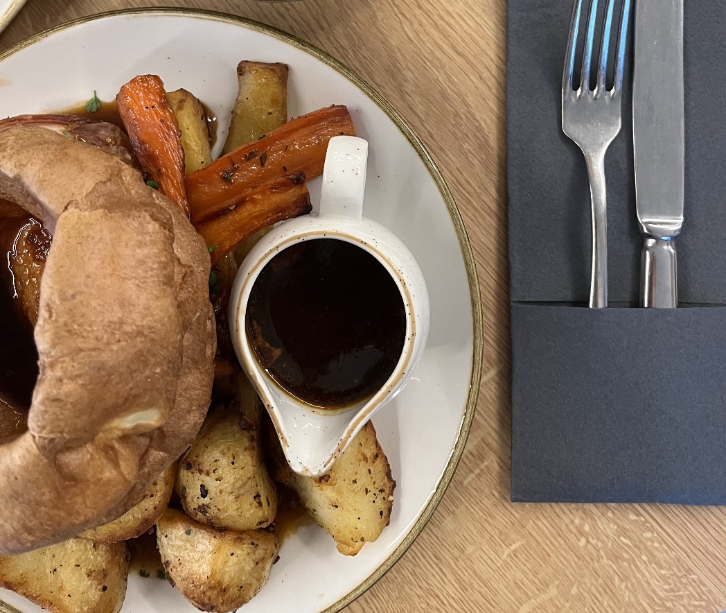 Slow-roasted, perfectly crisp and made for lingering Sundays, served with golden roast potatoes, Yorkshire pudding, seasonal vegetables, glazed star anise carrots, roast honey and thyme parsnips, and a generous jug of our rich house gravy.
